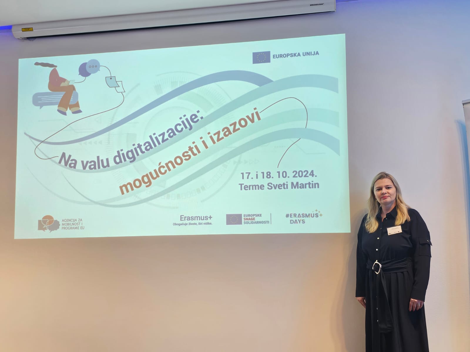 U organizaciji Agencije za mobilnost i programe EU održan je seminar u Svetom Martinu na Muri 17. i 18. listopada 2024. godine na temu "Na valu digitalizacije: mogućnosti i izazovi" na kojem je sudjelovala naš projektna koordinatorica Petra Bručić Barić.