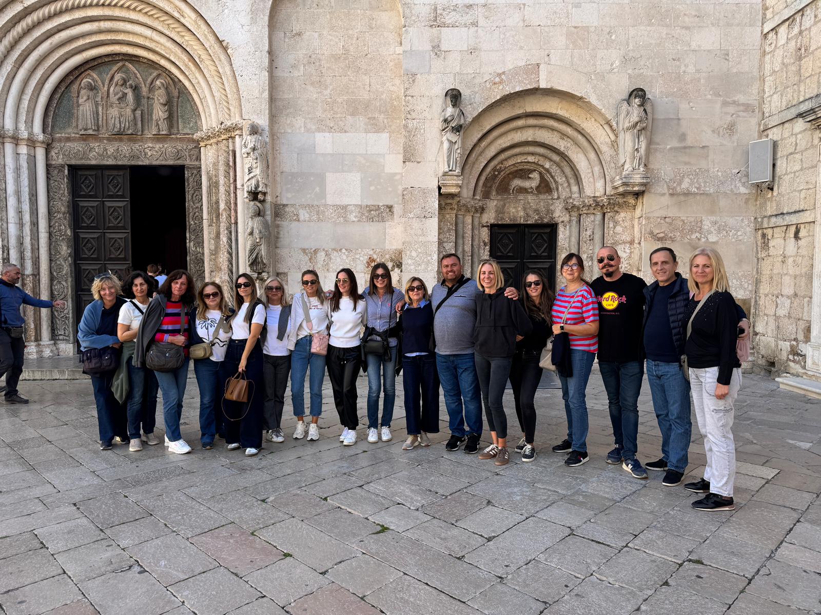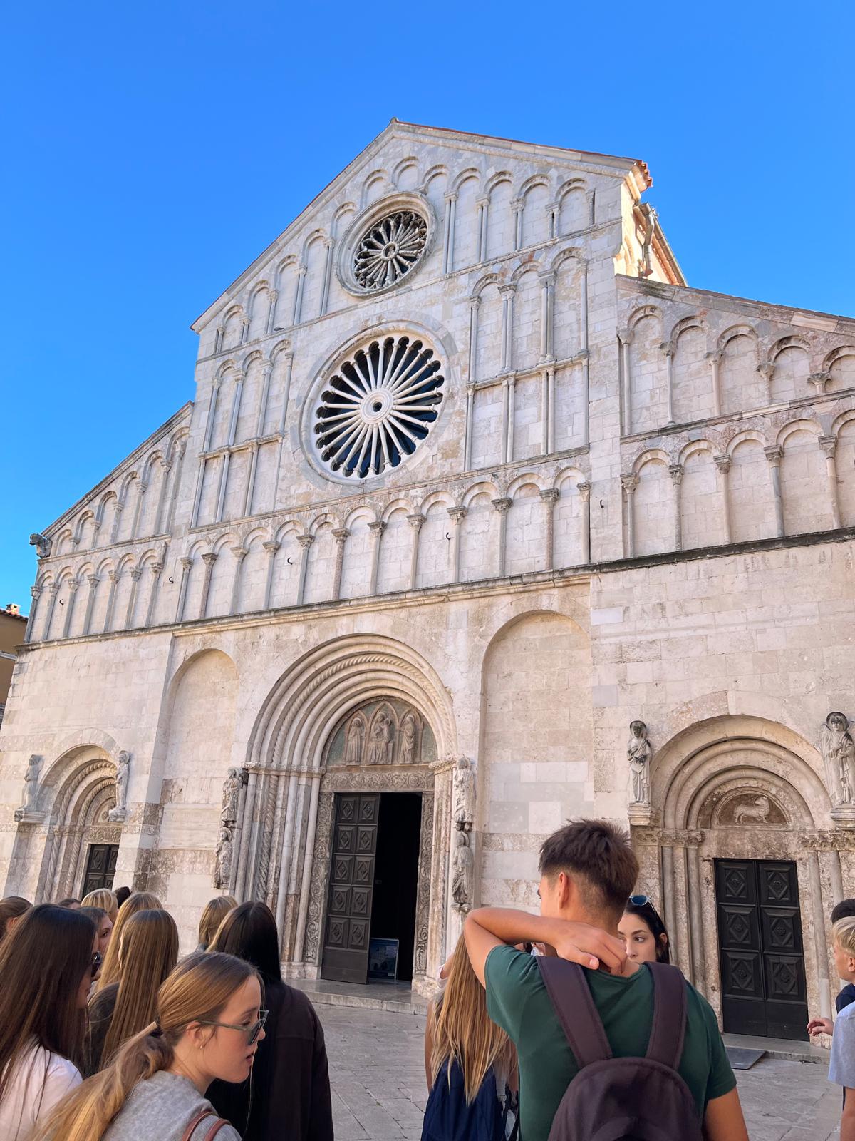Potom smo posjetili Zadar. Tamo su nas čekali lokalni vodiči koji su nam pokazali najvažnije znamenitosti i na zanimljiv nas način upoznali s njegovom poviješću, ali i sadašnjošću. Za Zadar se kaže da je muzej na otvorenom. Krenuli smo od suvremenih atrakcija: Pozdrava suncu i Morskih orgulja i potom zastali na Forumu. Forum u Zadru utemeljio je prvi rimski car Gaj Julije Cezar Oktavijan, o čemu svjedoče natpisi u kamenu iz 3. stoljeća, kada je gradnja završena. Forum je danas nezaobilazna šetnica i jedan od simbola grada. Ipak, najpoznatiji spomenik Zadra je Sv. Donat koji je već dugo izvan sakralne funkcije. Budući da ima izuzetne akustične karakteristike, desetljećima je dom glazbenih renesansnih festivala. Monumentalni srednjovjekovni spomenik sagrađen je u 9. stoljeću. Prvo je nosio ime Svetog Trojstva, a potom i ime biskupa Donata koji ju je dao sagraditi. Šetnju gradom završili smo kod katedrale sv. Stošije - monumentalne romaničke građevine, a ime nosi po srijemskoj mučenici.