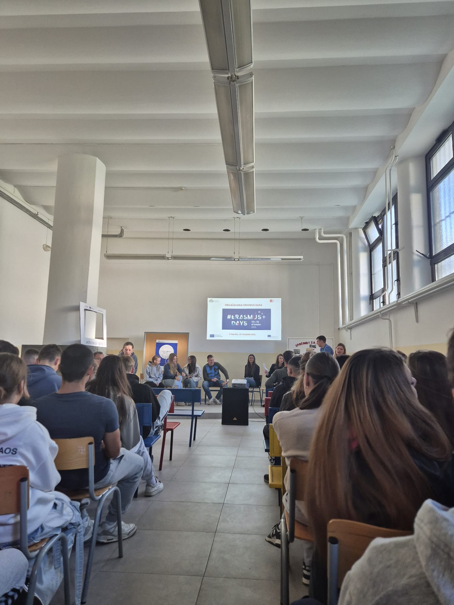 U prepunoj Pjevaoni učenici trećih i četvrtih razreda imali su priliku čuti o bogatom i raznolikom Erasmus+ programu naše škole. Moderator Erasmus dana bila je projektna koordinatorica Petra Bručić Barić koja je zajedno s učenicima Erasmus domaćinima predstavila projekte "Go Green Company" i projekt "Inclusive Voices for Democracy", kao i Erasmus aktivnosti iz prethodnih razdoblja.