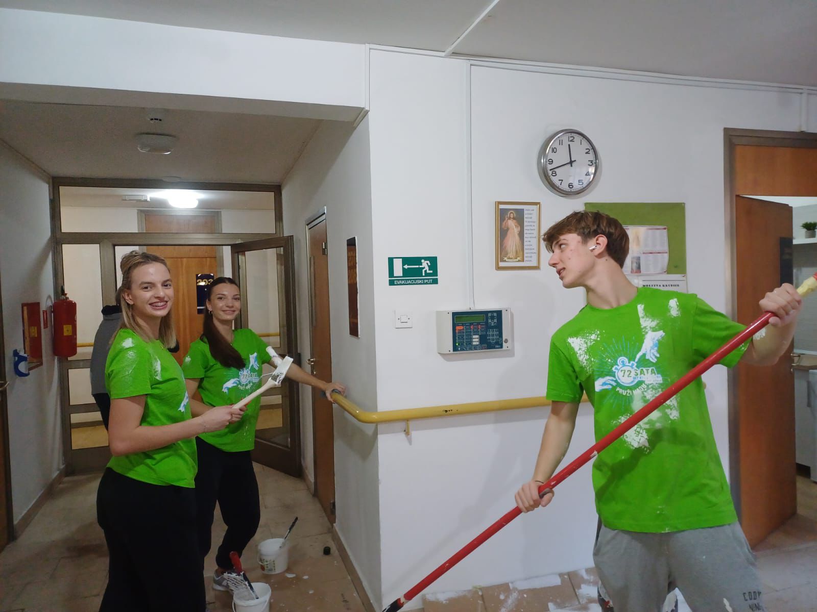 Učenici 4. D razreda (Lucija Barunović, Jan Jazić i Lara Manenica) volontirali su u Domu za starije osobe u Klaićevoj. Ondje su ličili zidove i uljepšavali prostor korisnika.