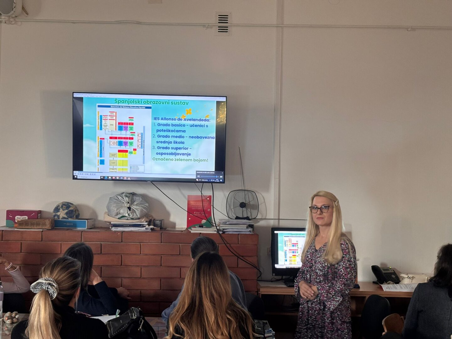 S obzirom na to da prilikom provedbe mobilnosti vodimo računa o sinergiji, nastavnica ekonomske skupine predmeta Ana Lasić istovremeno je upućena na job shadowing u spomenutoj španjolskoj školi, a ujedno je bila podrška nastavniku u pratnji učenica. Nastavnica koja je pratila rad kolega u strukovnoj nastavi španjolske škole predstavila je Nastavničkom vijeću paletu digitalnih alata i metoda koje u svojoj nastavi koriste španjolski nastavnici.