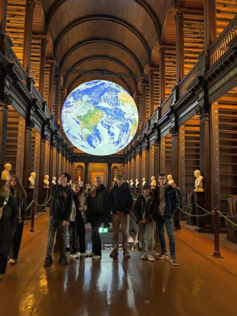 Posljednja stanica razgledavanja Dublina bila je Knjižnica Sveučilišta Trinity. 90 minuta šetnje kroz Staru knjižnicu s impresivnom kolekcijom knjiga, kao i interaktivno učenje o povijesti Knjige Kellsa, ostavilo je cijelu grupu bez daha i postalo jedno od nezaboravnih iskustava boravka u gradu koji će i učenici i profesorice zasigurno ponovno posjetiti.